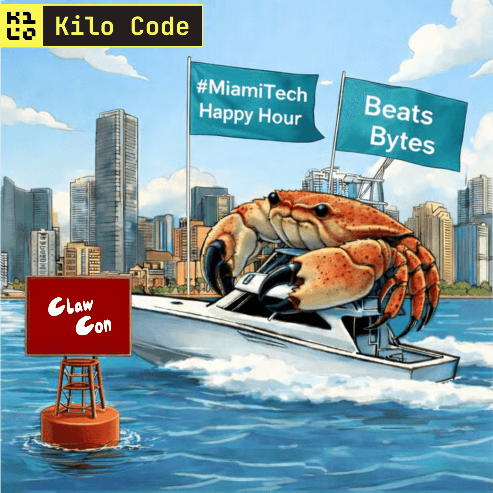 ClawCon in collaboration with the #MiamiTech Happy Hour and Beats + Bytes is co-hosted with Kilo Code, a leading open-source AI coding agent.