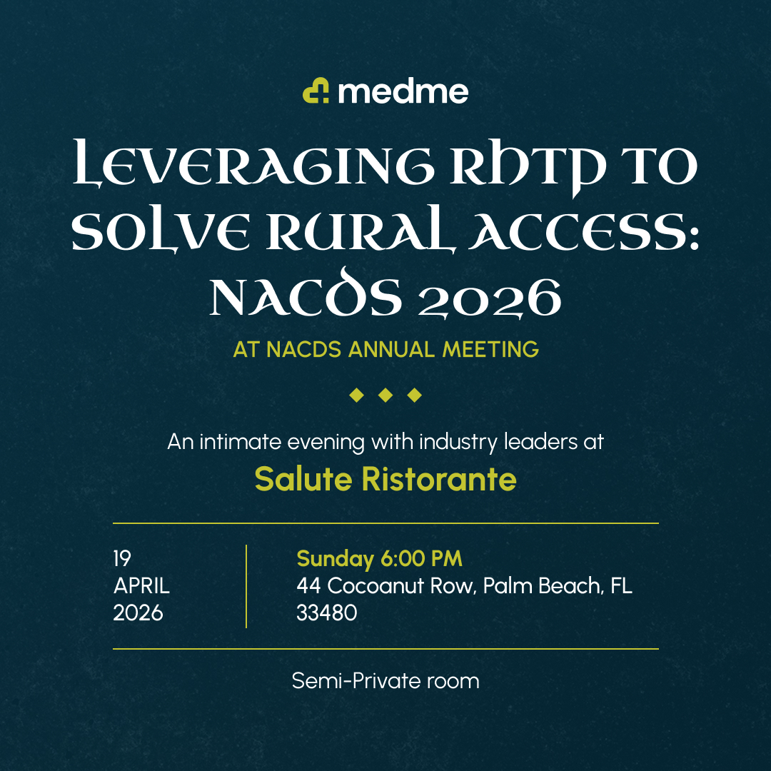 MedMe Health is bringing together a community of thought leaders for an engaging conversation about the Rural Health Transformation Program and how it can help your business. We want to create a space for old and new friends to connect, exchange ideas, unwind, and relax - you're officially off the clock!
