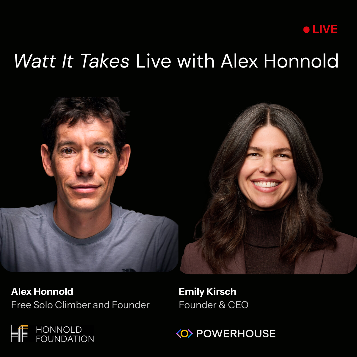 In this special live recording of Watt It Takes, Emily Kirsch will explore the throughline between extreme performance and global impact; returning to Alex’s early years, the mindset behind free soloing, and how discipline, risk tolerance, and conviction translate from vertical granite walls to accelerating clean energy access world-wide.