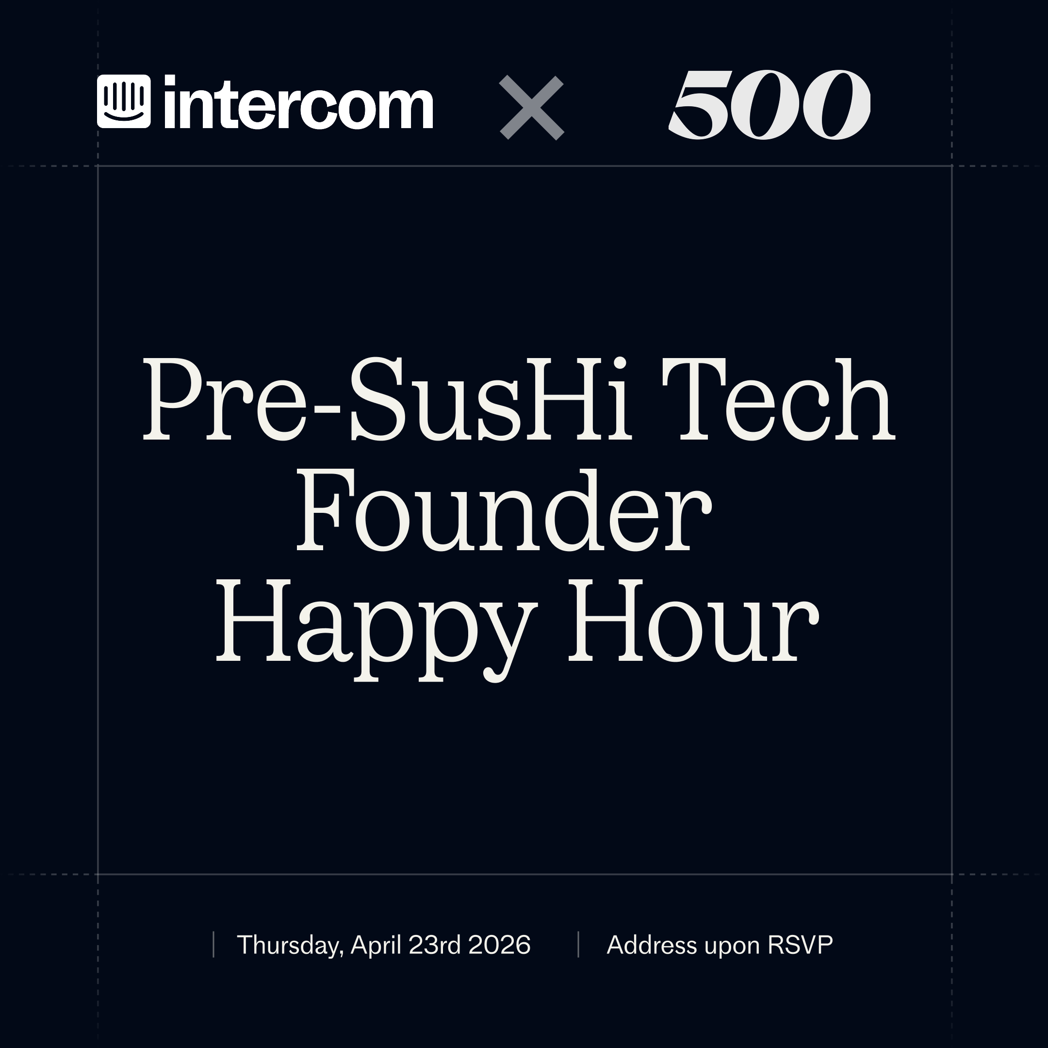 Join Intercom and 500 Global for a founder happy hour to welcome and kickoff for SusHi Tech 2026! We're excited to meet founders gearing up for an incredible week of networking and building. Come get a head start and learn from the teams from Intercom and 500 Global.
