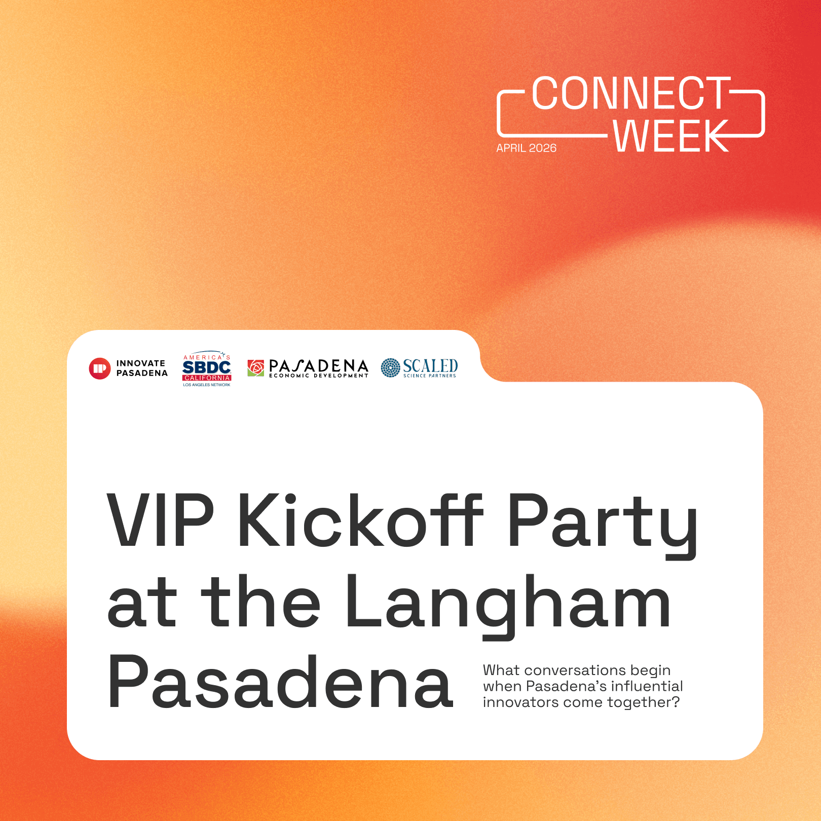 Join an exclusive evening with the sponsors and leaders behind Innovate Pasadena Connect Week 2026.
