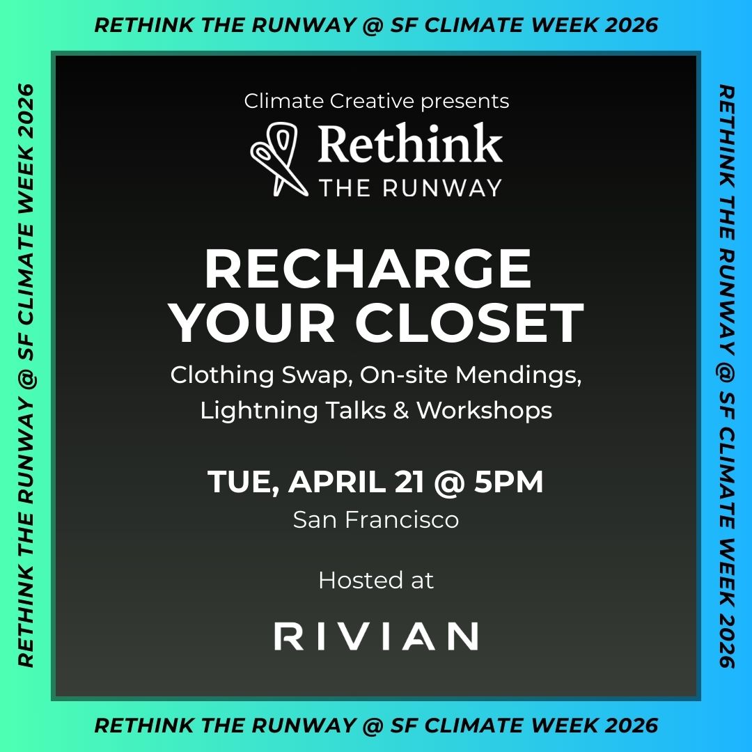 Your closet is ready for a refresh, and you are ready for an accessible circular fashion experience! Join Rethink the Runway for Recharge Your Closet, our 2026 Signature Event during SF Climate Week, where style seekers, repair specialists, and sustainability innovators come together to make circular fashion accessible, practical, and personal.