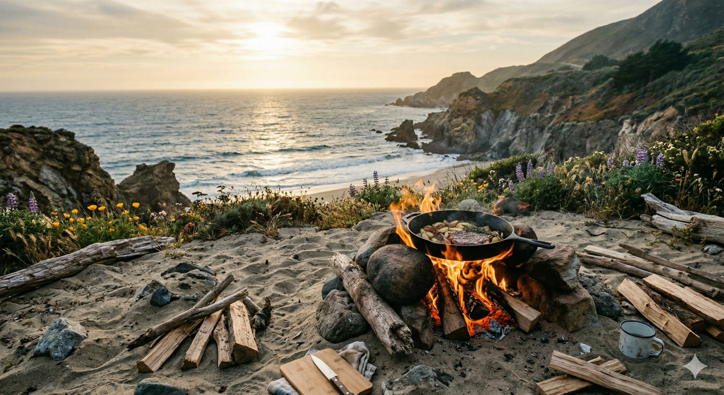 All food and fire are provided. All seafood is sustainably sourced. Depending on seasonal coastal conditions and California regulations, you may have the opportunity to forage some of what you eat.