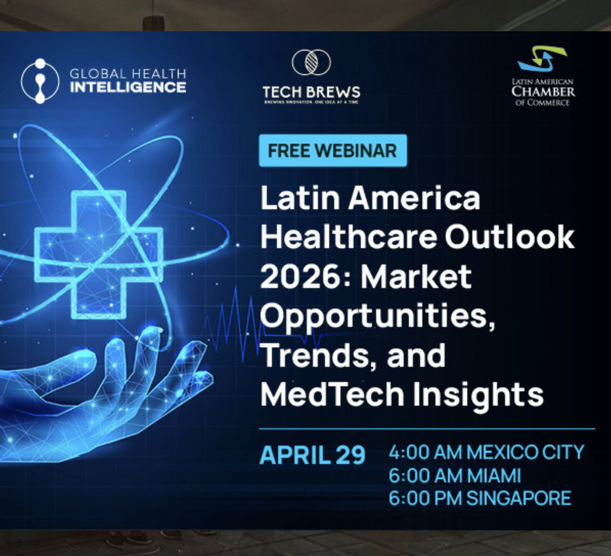 Are you looking to understand the healthcare and medical device sectors in Latin America? Join Global Health Intelligence (GHI), the Latin America Chamber of Commerce Singapore (LatAmCham), and TechBrews for an exclusive webinar designed to help you navigate and succeed in the LatAm market. Following a brief welcome and introduction by LatAmCham Singapore and TechBrews, the session will feature a presentation and an engaging fireside chat with our experts: Guillaume Corpart, CEO & Founder of Global Health Intelligence, and Jorge Chaves, Americas PMO Lead at Forefront Medical Technology.