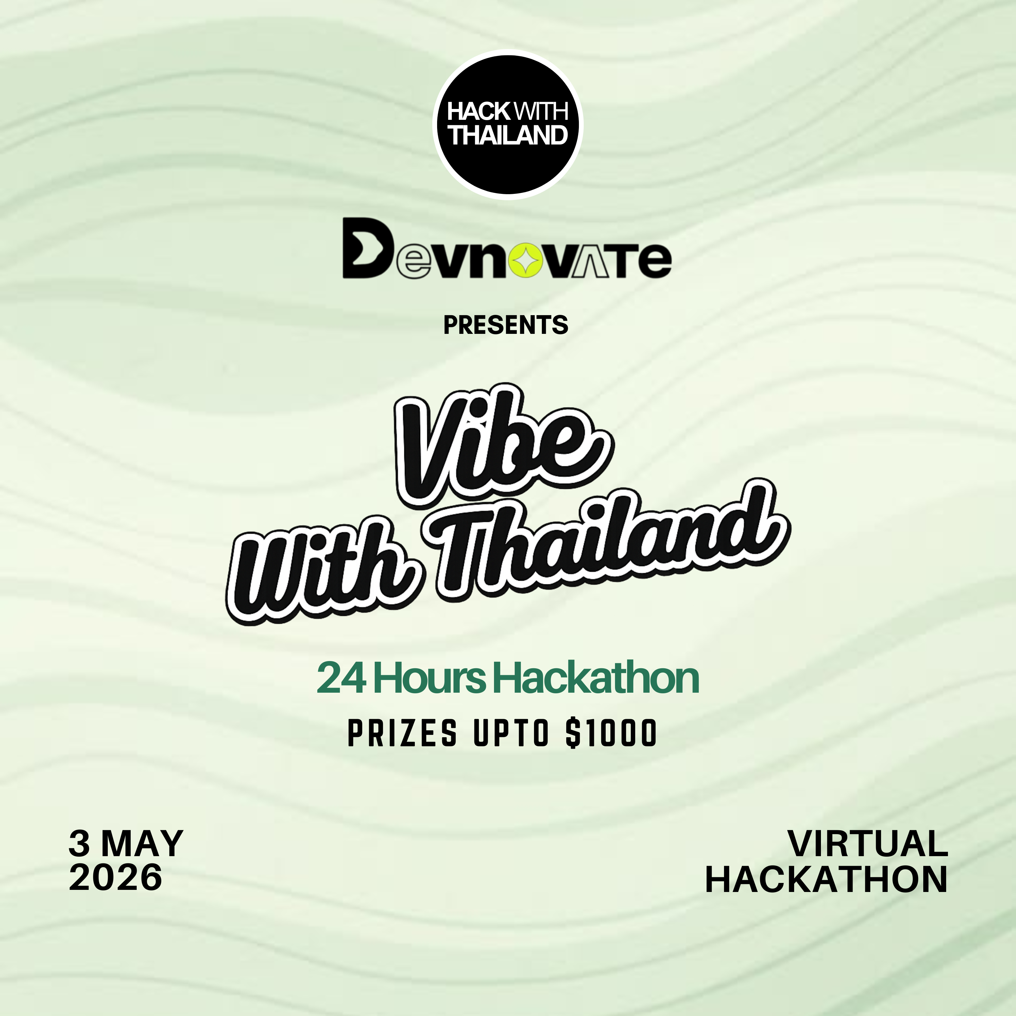 βπ Whatβs happening?VibewithThailand is a fast-paced, high-energy hackathon where creativity meets execution. Whether youβre a developer, designer, or builder β this is your stage.