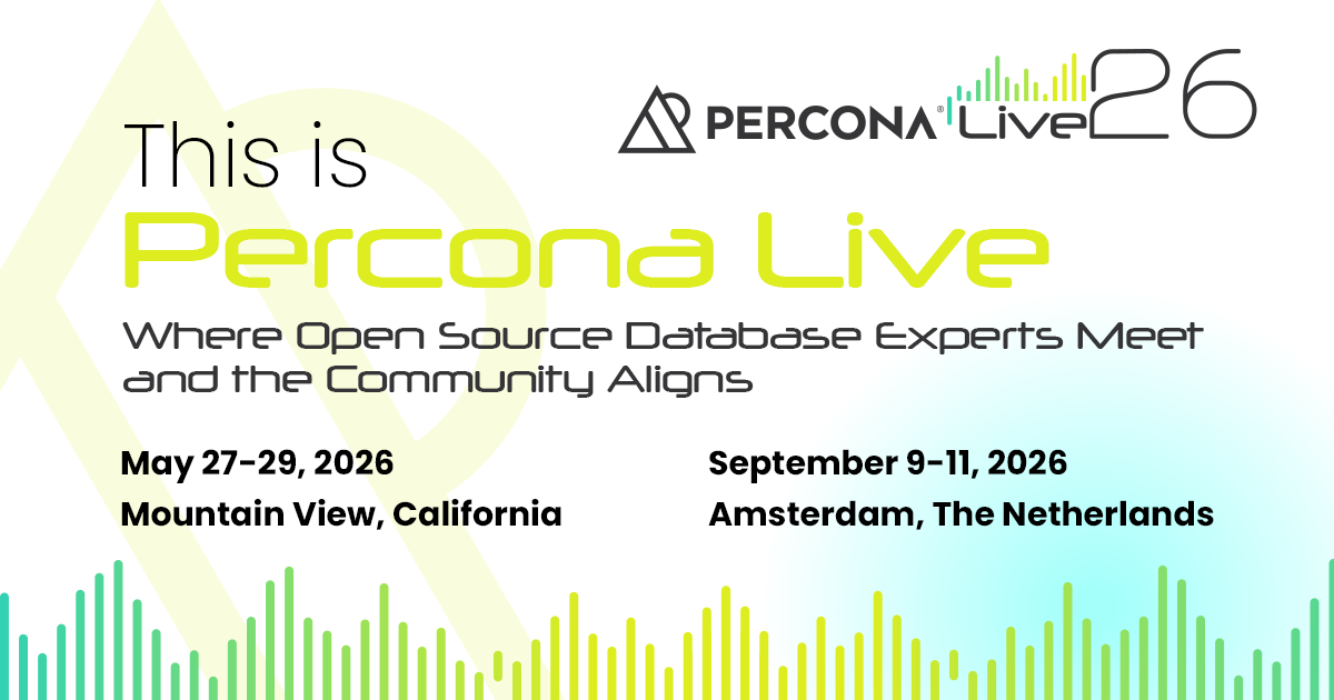 Percona Live Amsterdam is a free conference taking place on Wednesday, September 9, 2026 at Amsterdam, Netherlands. Attendance is free โ register to secure your spot. The event runs for approximately 48 hours.