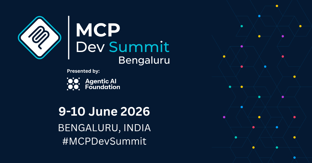 MCP Dev Summit Bengaluru is a free conference taking place on Tuesday, June 9, 2026 at Bengaluru, India. Attendance is free โ register to secure your spot.