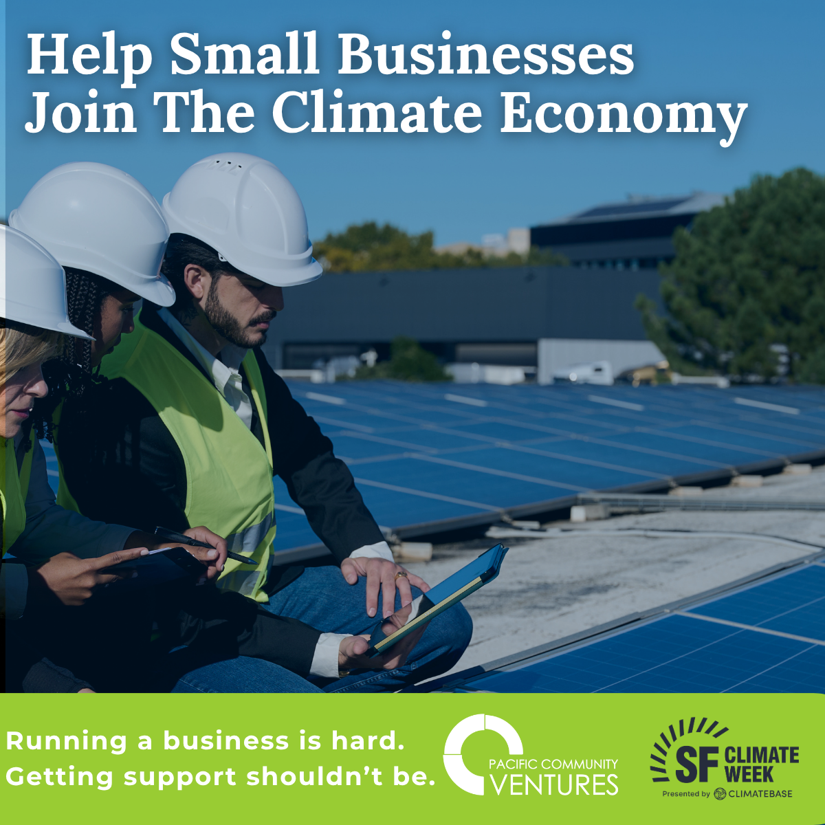PCV’s businessadvising.org is one of the fastest-growing mentor networks supporting small businesses in the country. Through the platform, thousands of small business owners have been connected to mentors with expertise across 27 areas of business advising.The climate economy is not only shaped by large companies or major infrastructure projects. It also depends on local small businesses that want to be part of a more sustainable future. The question is how. What does that look like for a neighborhood coffee shop, a laundromat, or an independent grocery store? What practical changes can small businesses make to strengthen their operations, support the environment, and improve job quality at the same time?We believe one answer is connection: bringing together mentors who care about the future of the planet with small business owners who want to build toward it.Join us to explore how small businesses fit into the climate economy and what it takes to support them well.By registering for this event, you agree to share your registration information with the organizers of SF Climate Week