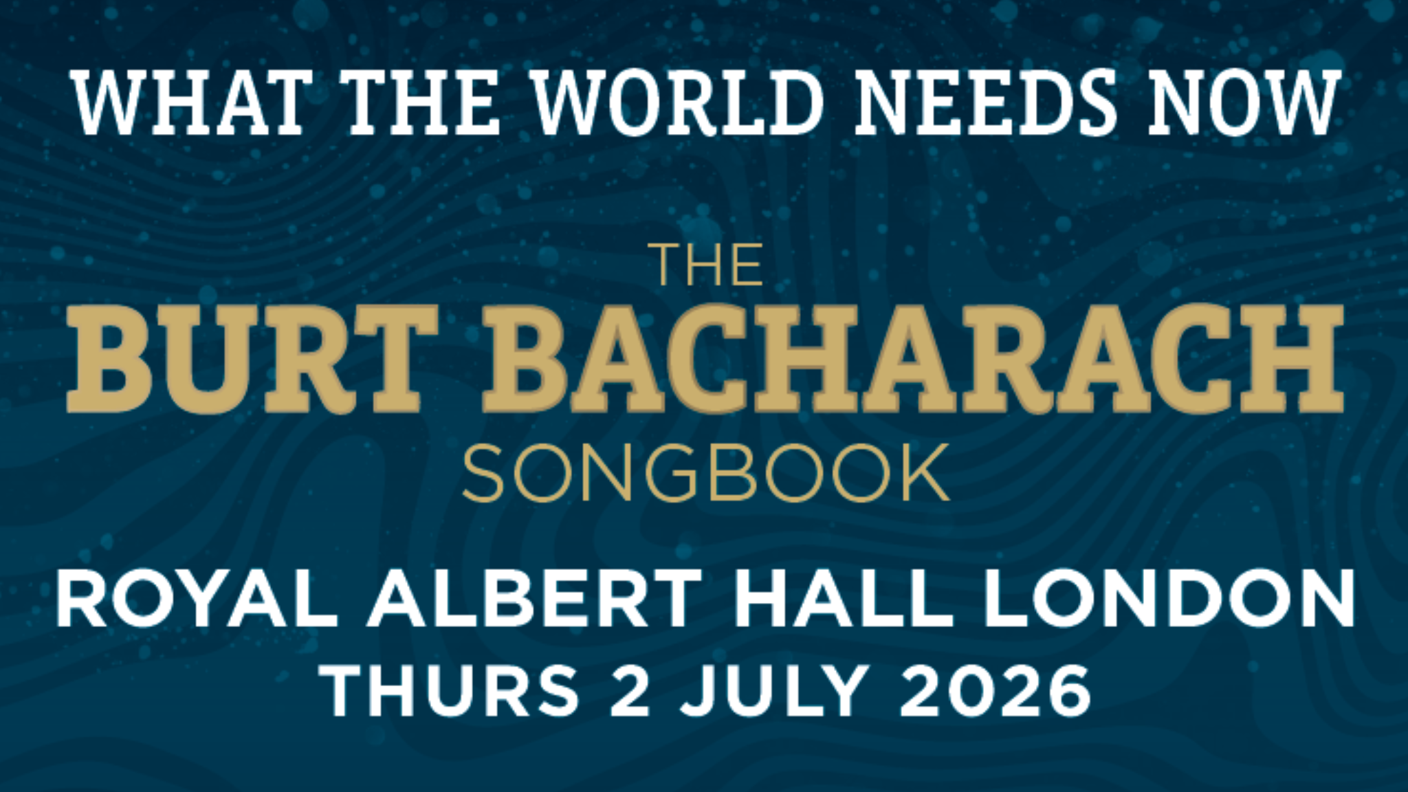What the World Needs Now: the Burt Bacharach Songbook is a Pop taking place on Monday, October 12, 2026 at De Montfort Hall, Leicester, GB. This Pop is organised by KENNEDY STREET ENTS LTD. This event is check the event page for pricing details.