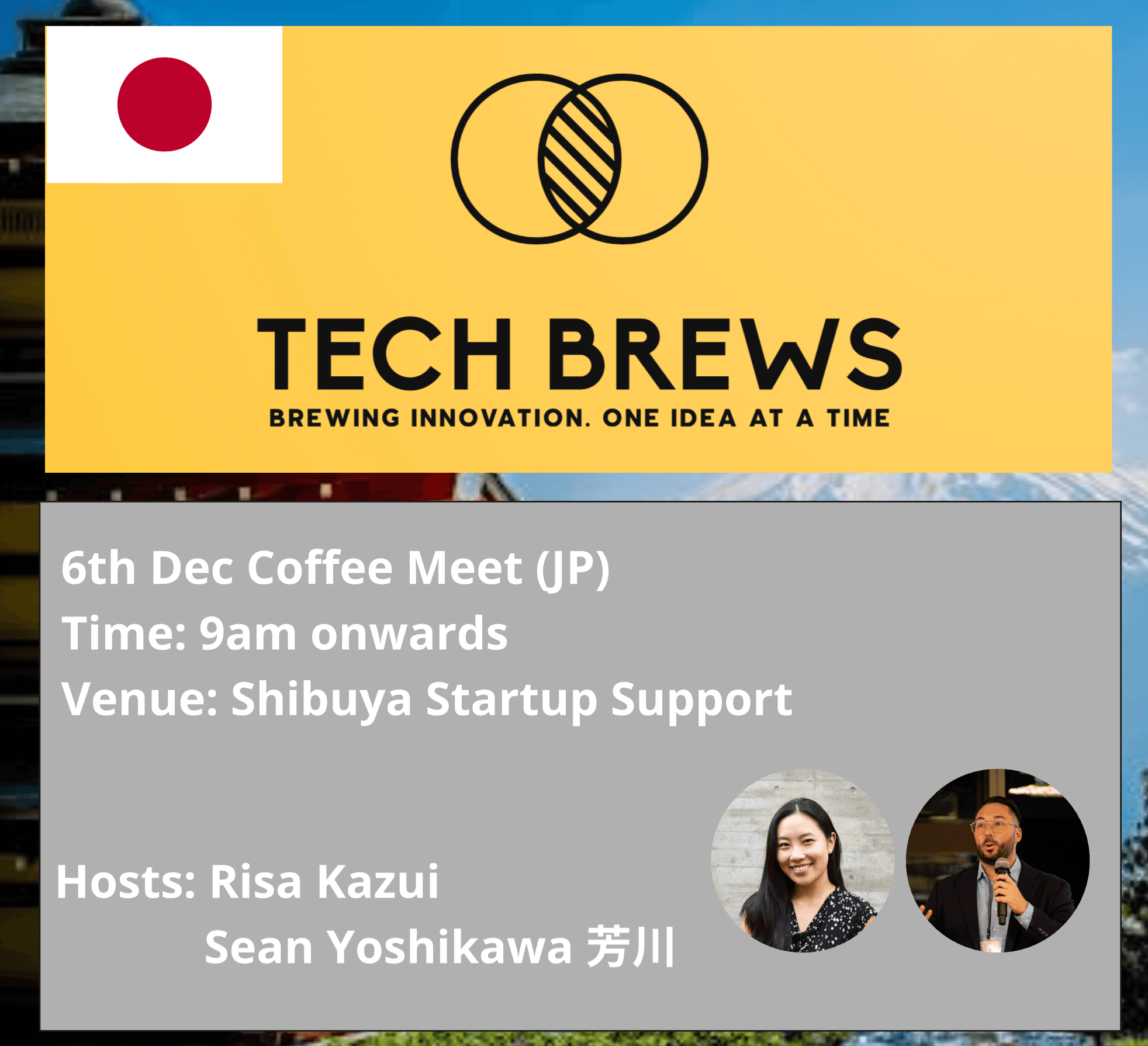 This meetup is with our Japan chapter🇯🇵Organizers:Techbrews a community founded by Terence Tan, an experienced tech/healthcare leader dedicated to empowering individuals across the Pacific in navigating the evolving landscape of healthcare and lifesciences. With a mission to support professionals in embracing various careers and entrepreneurship in this industry, Tech Brews offers a wealth of resources, including events, special roast sessions, and networking opportunities tailored to the unique needs of the trans-Pacific Region.Hosts:Techbrews a community founded by Terence Tan, an experienced tech/healthcare leader dedicated to empowering individuals across the Pacific in navigating the evolving landscape of healthcare and lifesciences. With a mission to support professionals in embracing various careers and entrepreneurship in this industry, Tech Brews offers a wealth of resources, including events, special roast sessions, and networking opportunities tailored to the unique needs of the trans-Pacific Region.Hosts:Risa Kazui specializes in market access and pricing in Japan, and is passionate about bringing healthcare innovation to Japan. She hosts The Cool People Podcast featuring international founders, and regularly writes about the startup ecosystem.