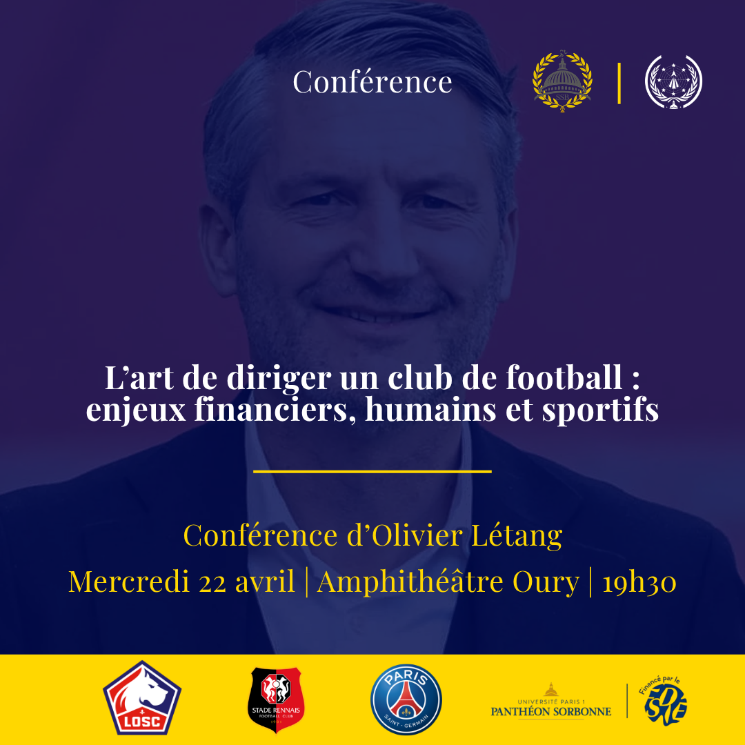Le Club des Entrepreneurs de la Sorbonne et Sorbonne Sport Business ont le plaisir de vous convier à une conférence exceptionnelle avec Olivier Létang, président du LOSC Lille, ancien dirigeant du Paris Saint-Germain et du Stade Rennais FC.