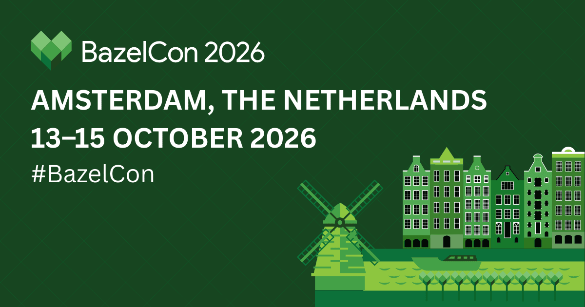 BazelCon is a free conference taking place on Tuesday, October 13, 2026 at Amsterdam, Netherlands. Attendance is free โ register to secure your spot.