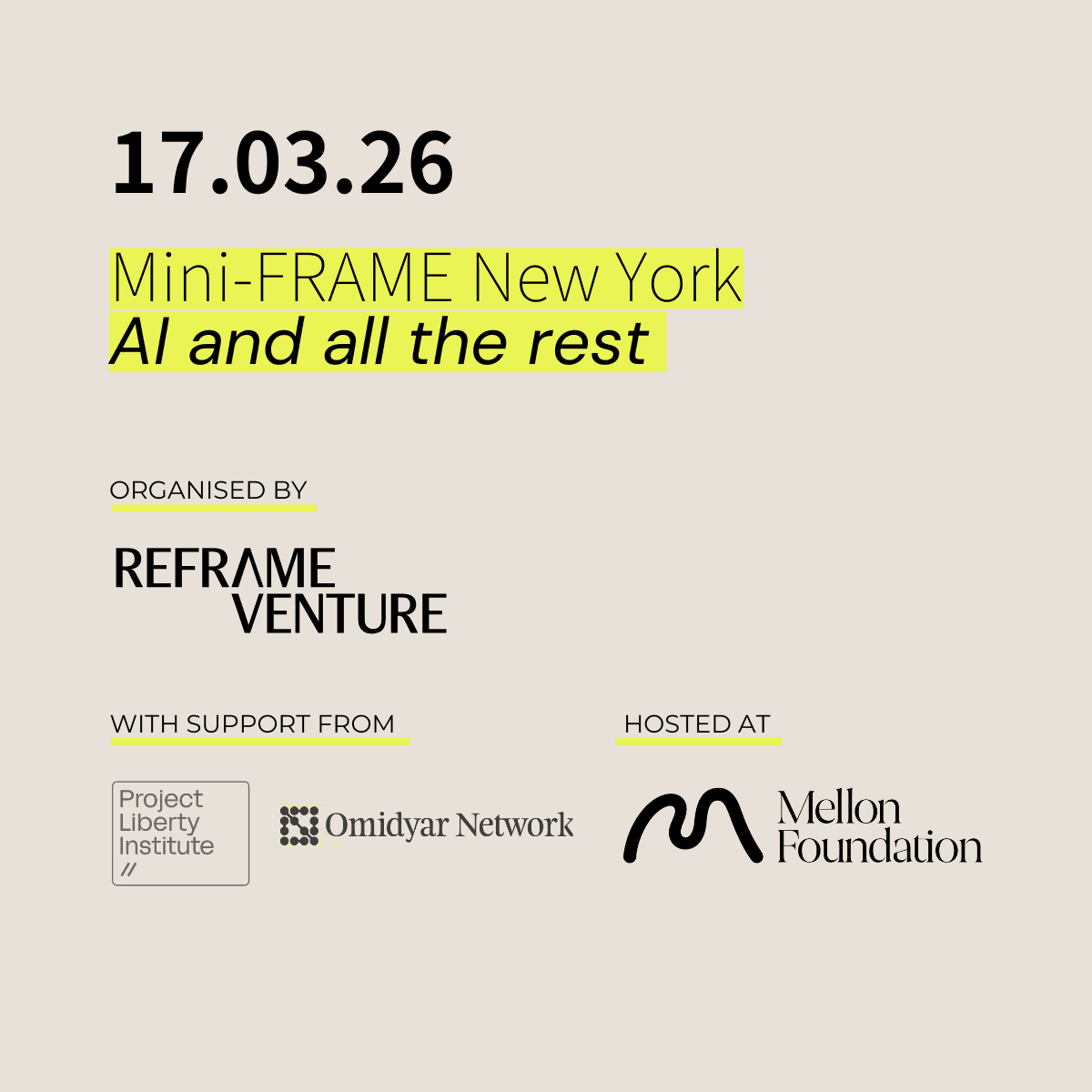 Join us for our first mini-FRAME conference in New York City, organised by Reframe Venture on all things AI, and some of 'the rest' of responsible investing, in the afternoon of Tuesday March 17.