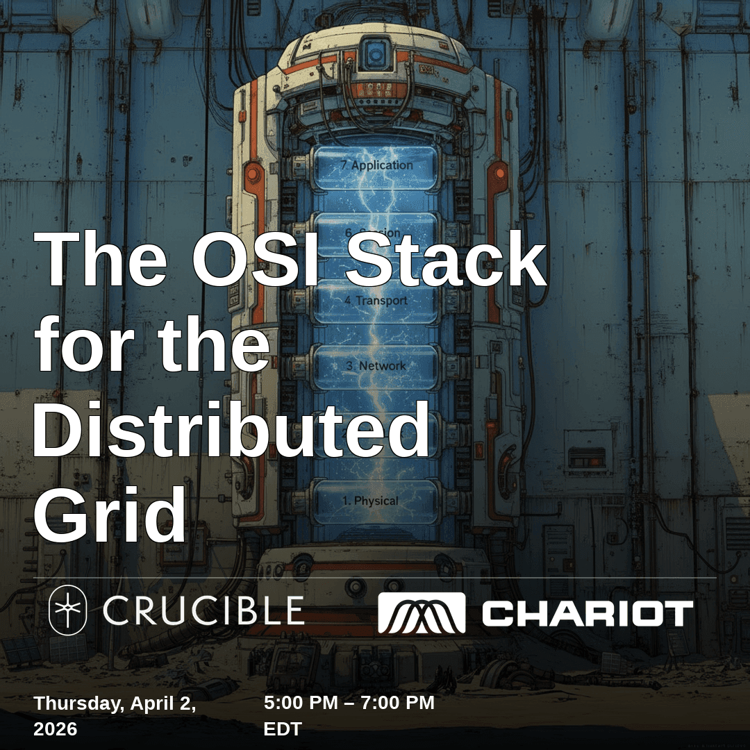 Join Crucible Capital, Vatn Systems, Hextronics, and Chariot Defense on April 2nd during Deep Tech NYC for an evening conversation on the tactical microgrid standard and the development of the OSI stack for the distributed grid. We’ll host one focused talk on how transmission management systems, network protocols, and the OSI stack intersect with distributed energy resources, edge compute, and defense-grade security, followed by drinks and open discussion with operators, engineers, founders, and investors working on real-world infrastructure. If you care about how distributed grids are monitored, coordinated, and secured, this one’s for you.