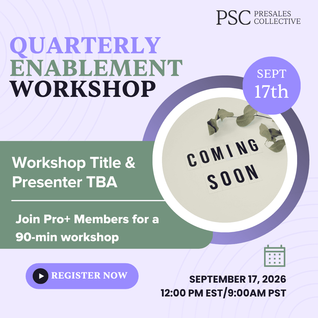Mid-year momentum starts here!Join us for our third quarterly Enablement Workshop of 2026, an exclusive Pro+ session featuring an industry-leading author, coach, or practitioner who will share transformative insights tailored for presales professionals.