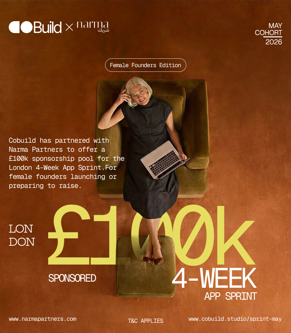 Cobuild has partnered with Narma Partners to offer a £100k sponsorship pool for the London 4-Week App Sprint.
