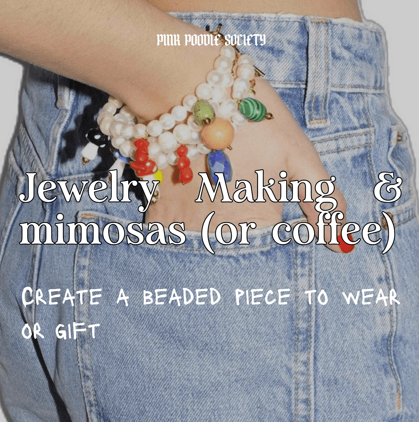All beads and materials (gemstones, pearls, glass & ceramic beads)Jewelry-making tools and guidance2 mimosas or coffee/tea if you prefer non-alcoholic beverages