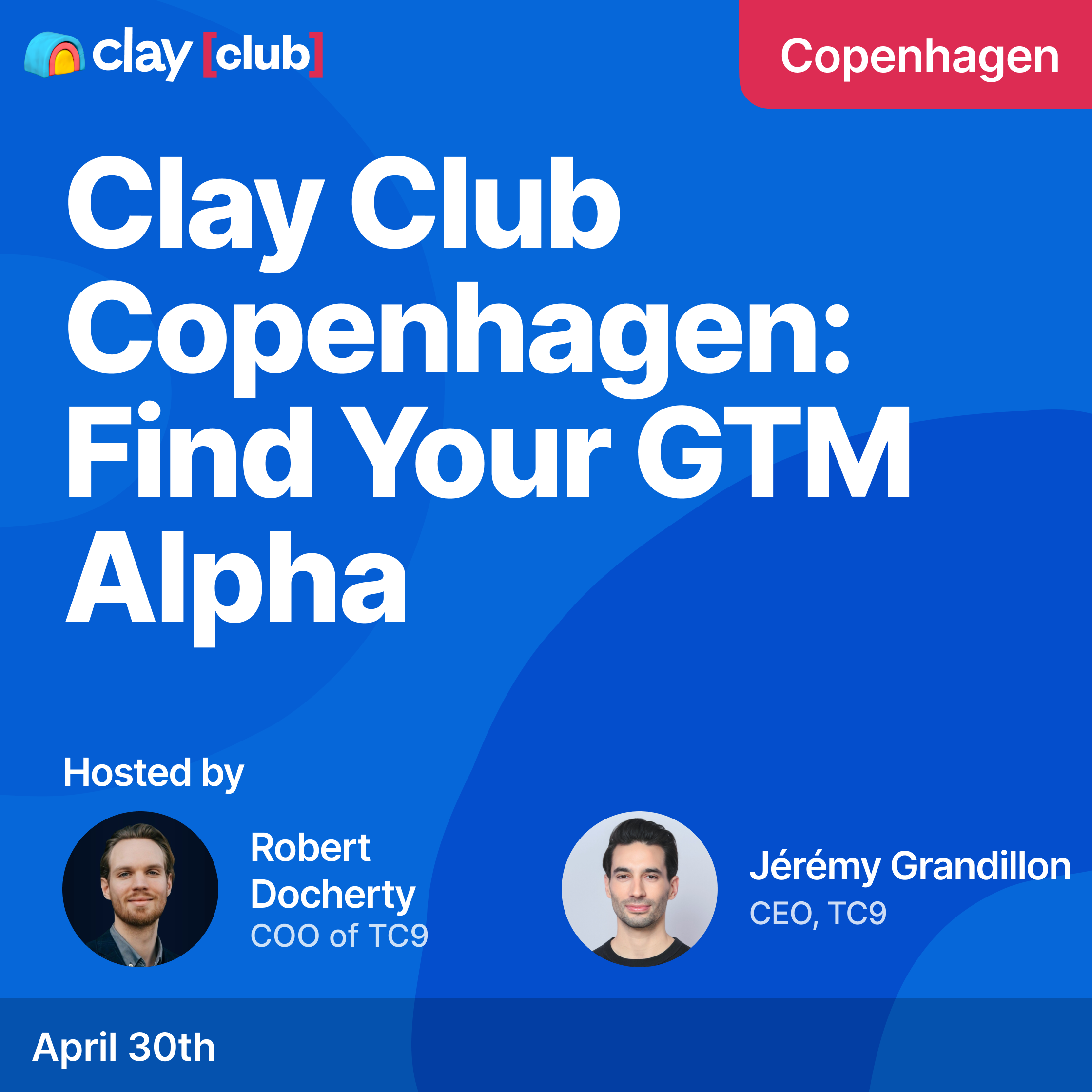 Clay Club Copenhagen: Find Your GTM AlphaWant to see how the sharpest B2B teams are orchestrating data and AI to build real competitive advantages in sales and marketing and learn how to build your own edge before you leave the room?Join us for the very first Clay Club Copenhagen, hosted by TC9 in partnership with Clay the AI-powered GTM platform trusted by thousands of the world's fastest-growing B2B teams to combine data, AI, and workflow automation into one engine.Clay recently opened its first European office in London and is expanding fast across the continent. As Clay's official European implementation partner, TC9 brings a critical edge: deep expertise in GDPR, European marketing regulations, and the cultural nuances that make European GTM fundamentally different from the US.This is not a tool demo. It's about strategy, orchestration, and scale.What you'll learn: