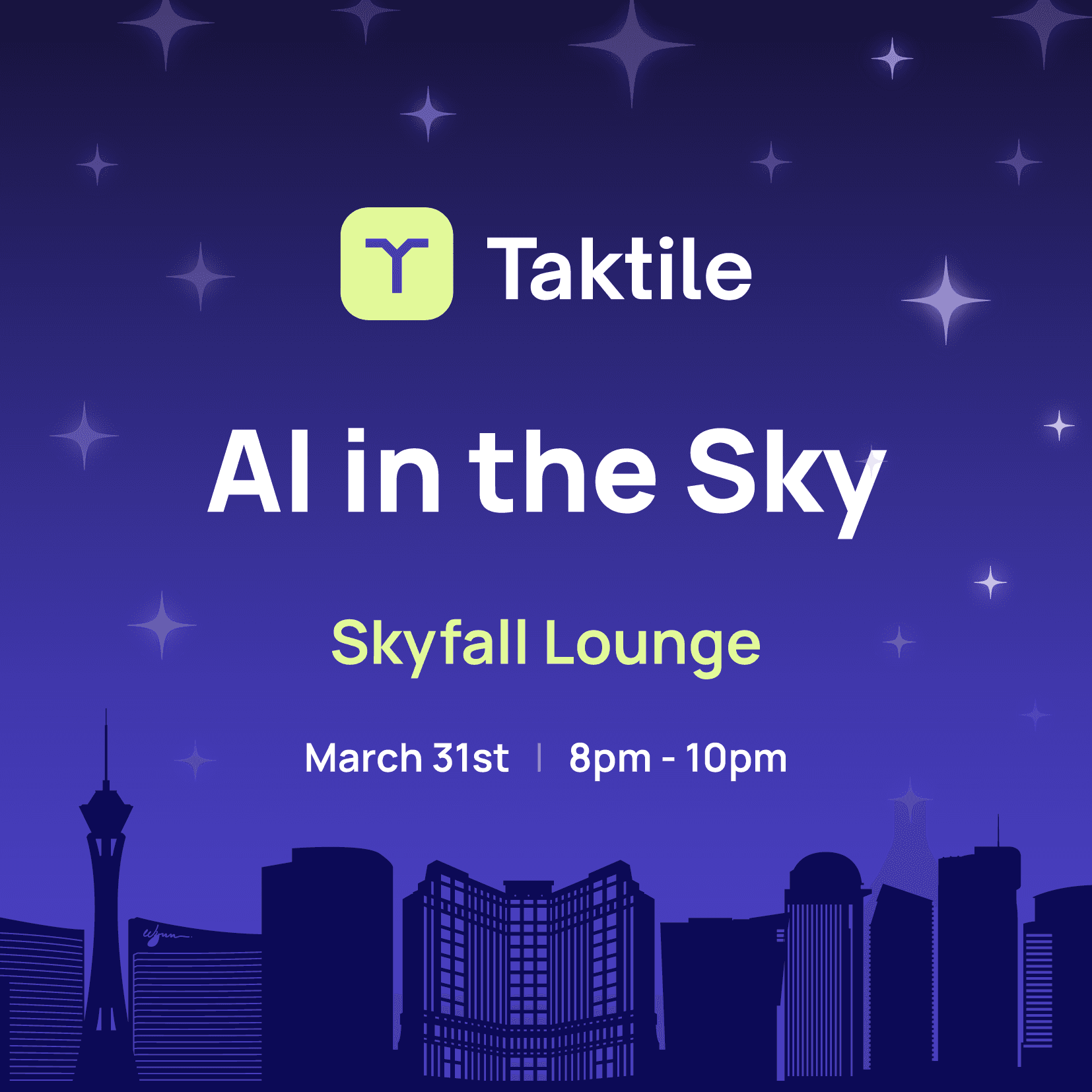 Join Taktile for a evening above the Vegas Skyline during Fintech Meetup.We’re hosting a private happy hour at Skyfall Lounge, the panoramic cocktail bar perched on the 64th floor of the W Las Vegas, offering sweeping views of the Strip. Step away from the conference floor and connect with peers across AI, credit, lending, payments, risk, and compliance for great conversations, cocktails, and small bites.Whether you’re building, scaling, or exploring AI-powered decisioning in financial services, this is a chance to exchange ideas with others shaping the next generation of fintech.Space is limited. RSVP early to secure your spot.