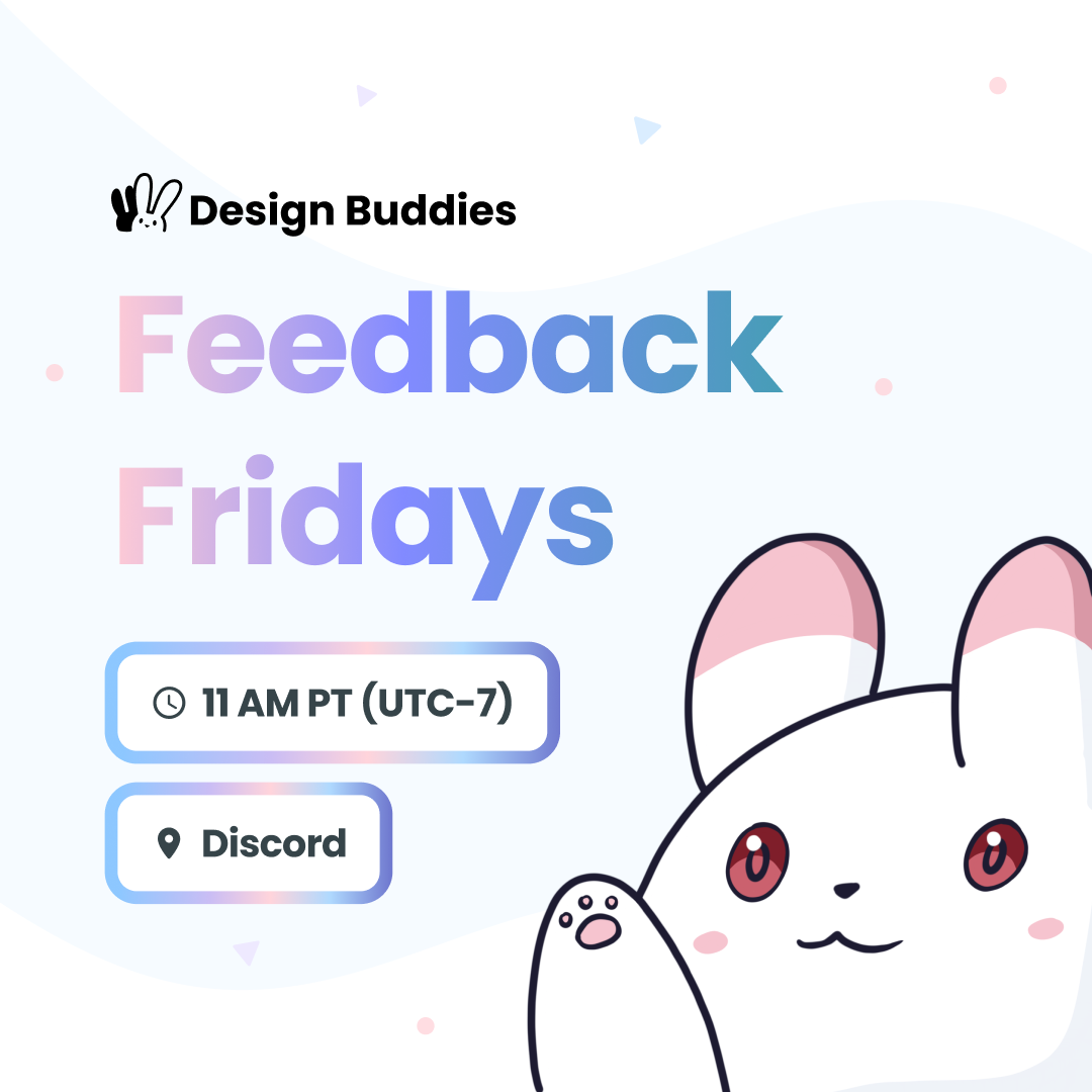 - Design Feedback Friday! is organised by Design Buddies. You can find more of their events on Rifio.