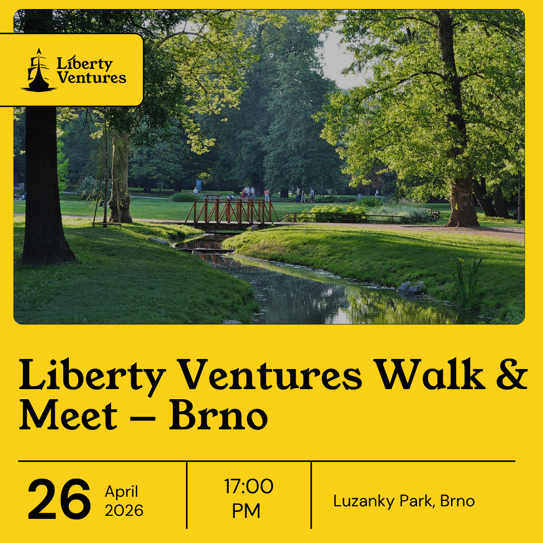 Liberty Ventures Walk & Meet — Brno is a free independent taking place on Sunday, April 26, 2026 at Lužánky Park, Pionýrská, 602 00 Brno-střed, Czechia, Brno-město, Czechia. This independent is organised by Liberty Ventures. Attendance is free — register to secure your spot. The event runs for approximately 2 hours.
