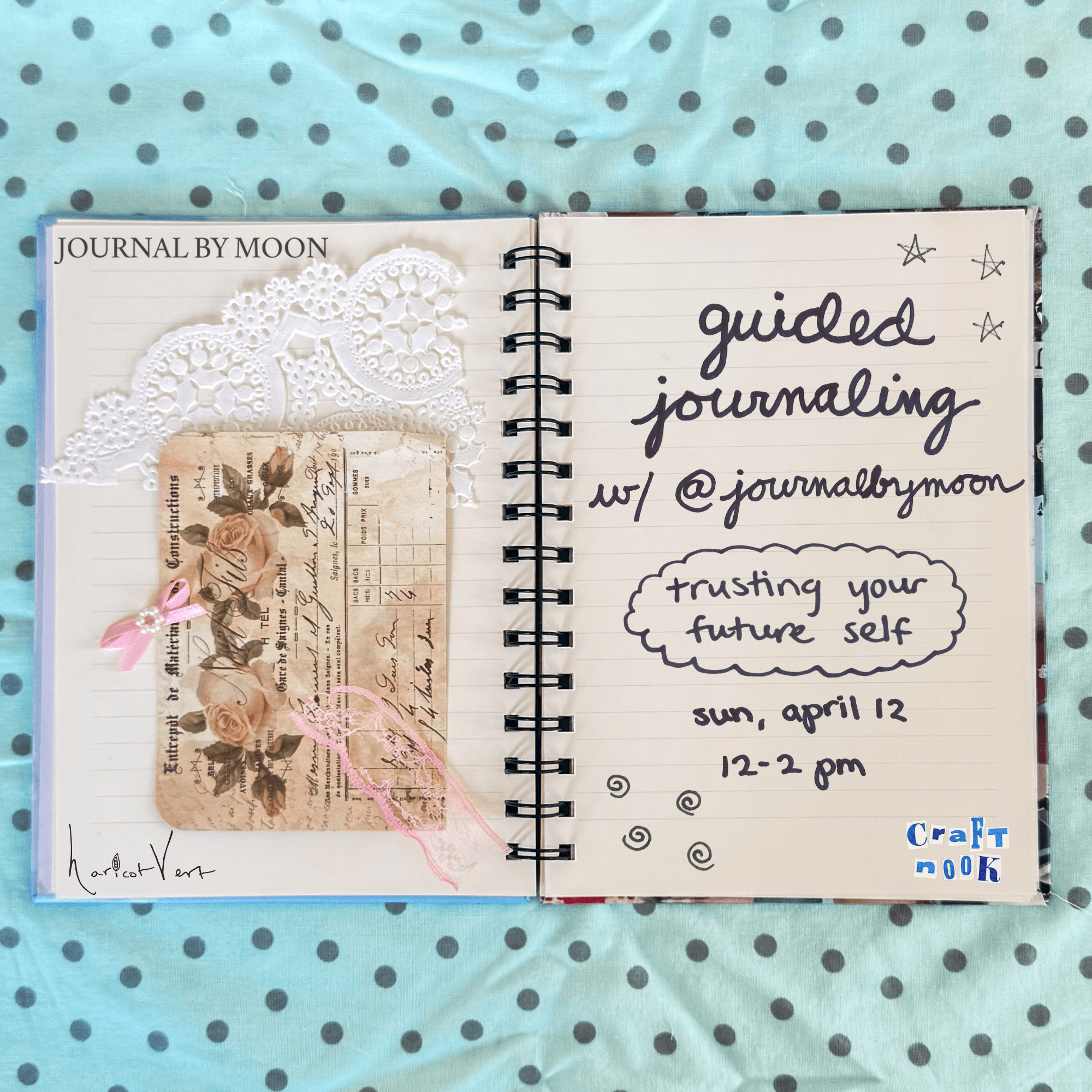 Slow down and reconnect through intentional writing led by Grace Moon of @journalbymoon, with the theme, "Trusting In Your Future Self". Guided prompts will help you explore, reflect, and put pen to page in a cozy, supportive space.