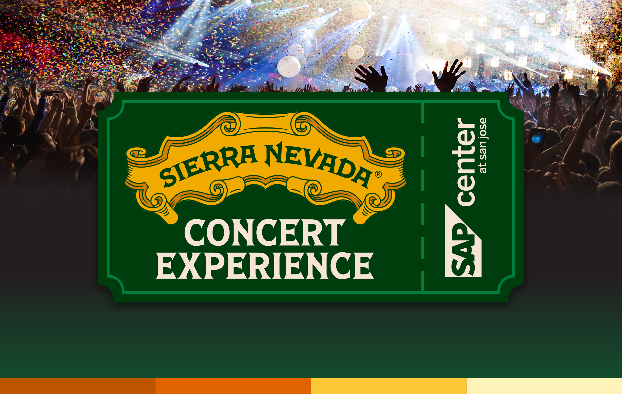 Upon arrival, enjoy private VIP entry into our NetApp Celly Lounge, located on W Santa Clara Street, where you'll quickly enter SAP Center. Once inside, enjoy our food selection, draft beer, and wine while awaiting the main act to take the stage. The Sierra Nevada Concert Experience inside the NetApp Celly Lounge will be open from 30 minutes prior to door time until 15 minutes prior to the main act taking the stage. Drink responsibly | Responsibility.org *Please note, you MUST have a ticket to the event to purchase a ticket for the Sierra Nevada Concert Experience. This is an add-on package, not a ticket to the event.