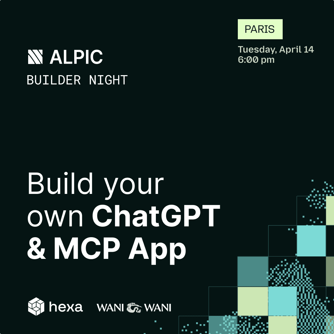 During the Builder Night, you'll build a working ChatGPT and MCP App with the support of the Alpic team and tools.