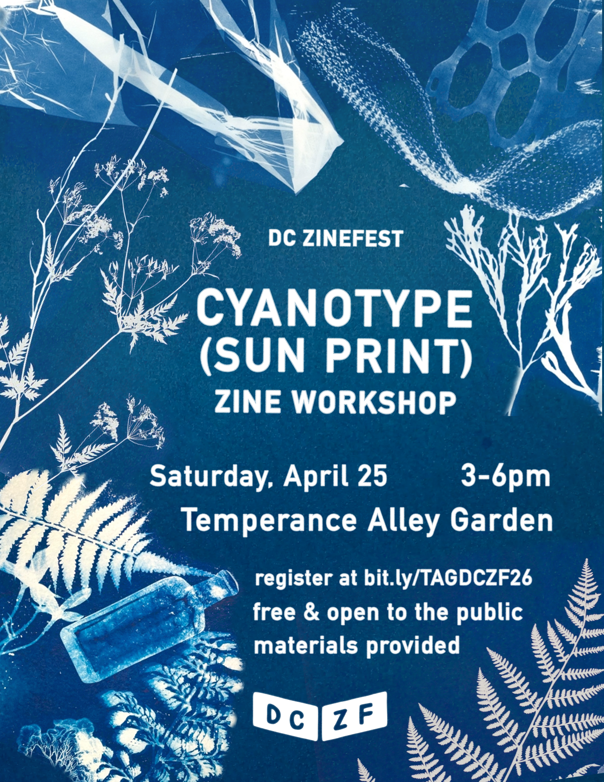DC Zinefest Cyanotype Workshop at Temperance Alley Garden is a free independent taking place on Saturday, April 25, 2026 at Temperance Alley Garden, 1931 13th St NW, Washington, DC 20009, USA, Washington, United States. Attendance is free โ register to secure your spot. Currently 180 people have registered out of 180 spots. The event runs for approximately 3 hours.