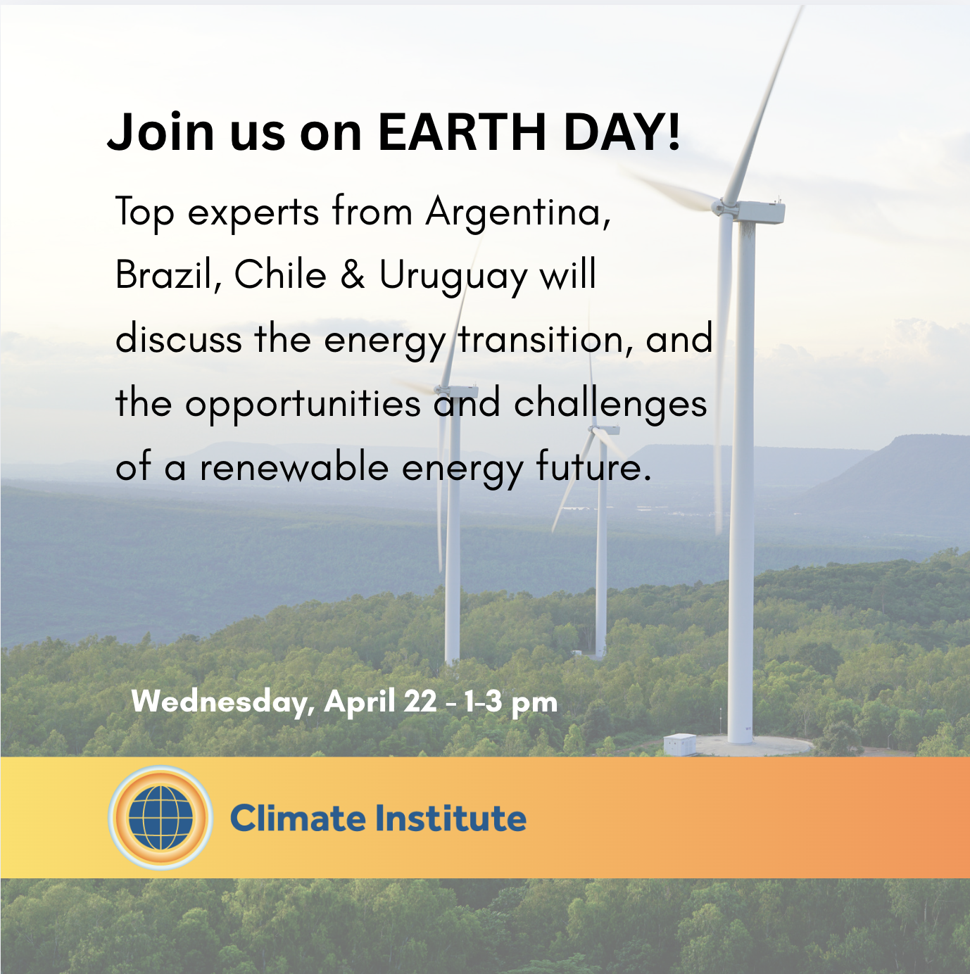 Join us on Earth Day to discuss the Electrification of South America’s Economies Using Renewable Energy.