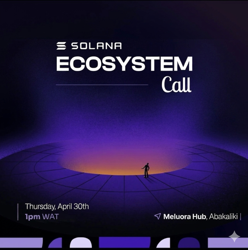 SOLANA ECOSYSTEM CALL - (APRIL) EBONYI is a free independent taking place on Thursday, April 30, 2026 at Meluora HUB, Top Floor, Jason Plaza, 18 Brackenbury St, off Water Works Road, Azuiyi Udene, Abakaliki 480101, Ebonyi, Nigeria, Abakaliki, Nigeria. Attendance is free β register to secure your spot. Currently 21 people have registered out of 21 spots. The event runs for approximately 4 hours.