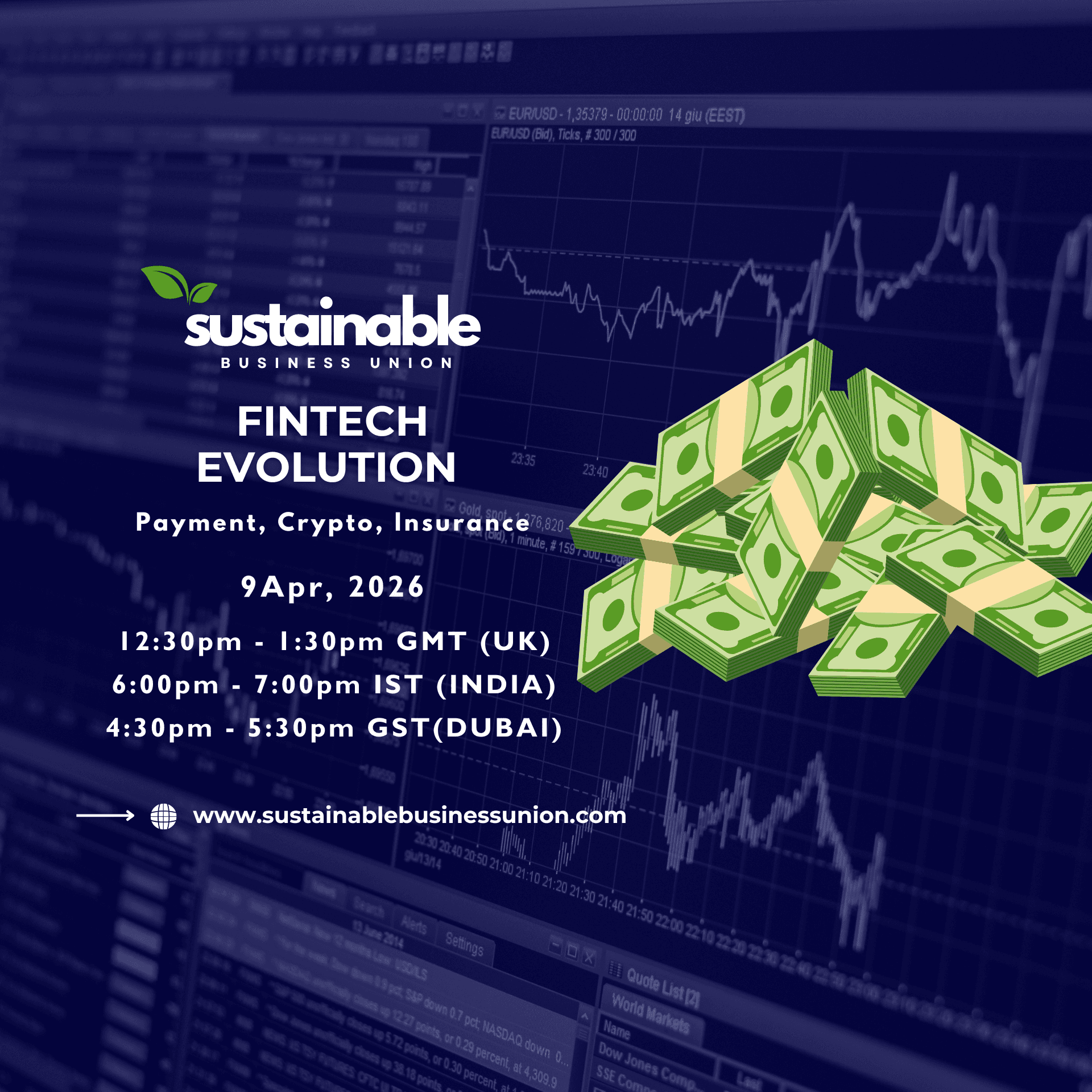 Join Sustainable Business Union on Zoom for a concise Q1 FinTech market update—an hour of clear, practical insight into where the sector stands and what’s coming next. We’ll walk through payment trends, shifts in digital banking, lending and credit dynamics, developments in WealthTech and InsureTech, plus the latest in blockchain & crypto and RegTech. Expect focused analysis of market movements, regulatory changes, investment activity, and practical takeaways you can use immediately.