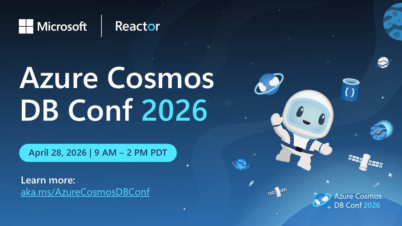 Azure Cosmos DB Conf 2026 is a free conference taking place on Tuesday, April 28, 2026 at online (virtual event). Attendance is free โ register to secure your spot.