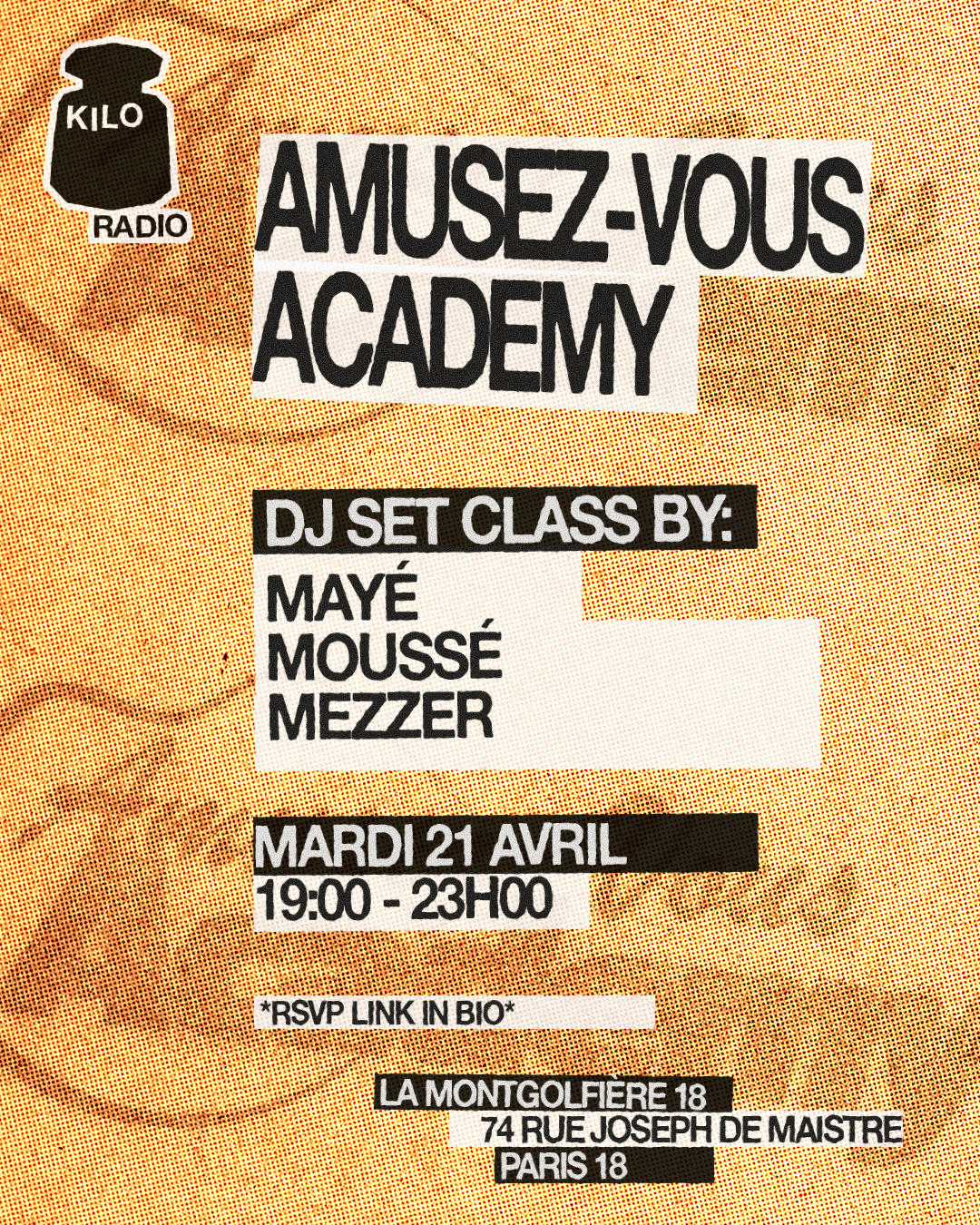 💋 Amusez-vous Academy @La Montgolfière 18ème is a free independent taking place on Tuesday, April 21, 2026 at La Montgolfière Lamarck, 74 Rue Joseph de Maistre, 75018 Paris, France, Paris, France. Attendance is free — register to secure your spot. The event runs for approximately 4 hours.