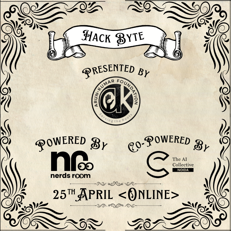 The hackathon is proudly presented by Arun-Kumar Foundation (AKF), an organization focused on empowering innovation and community-driven initiatives. It is powered by Nerds Room, a fast-growing student tech community known for organizing large-scale hackathons, meetups, and hands-on learning experiences across multiple cities. Supporting the initiative is AI Collective Noida, a vibrant community of AI enthusiasts, developers, and learners working together to explore, build, and share knowledge in artificial intelligence.