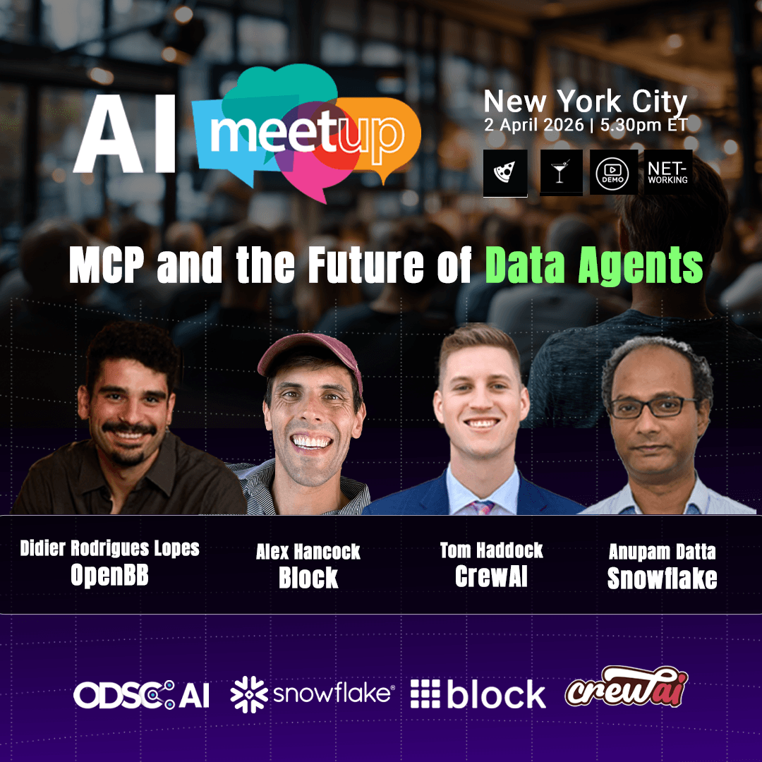 Join ODSC AI, Snowflake, Block, CrewAI and OpenBB in NYC for an evening dedicated to the next evolution of AI: Autonomous Data Agents.