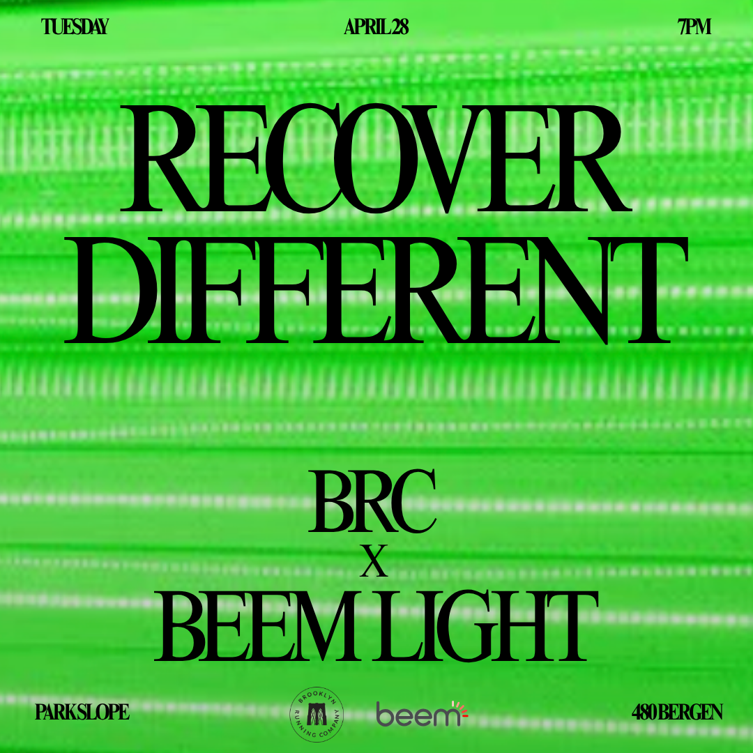 RECOVER DIFFERENT โ BEEM LIGHT SAUNA x BROOKLYN RUNNING CO. covers topics including Fitness, Wellness, New York, NYC Running Events Calendar. Find similar events by browsing these topics on Rifio.