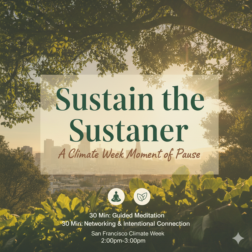 To show up for the planet, we first have to show up for ourselves. In the rush of SF Climate Week, itβs easy to let our own "inner climate" fall into imbalance. Join us for an hour of guided meditation and intentional connection.