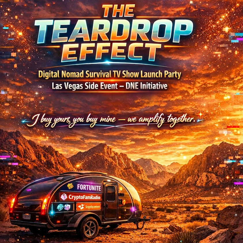 Join us in Las Vegas for the Digital Nomad Experience Initiative NFT launch party of The Teardrop Effect, the crypto survivor TV Show, brought to you by Crypto Fam Radio and Fortunite DAO.