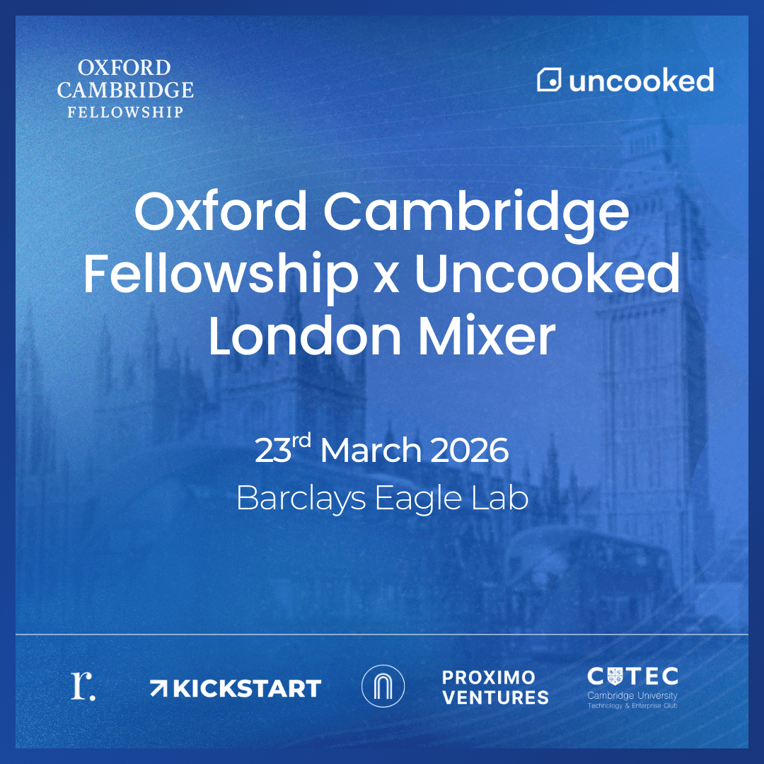 The Oxford Cambridge Fellowship and Uncooked are hosting an exclusive evening mixer for the people actively building, backing, and scaling the UK's next generation of startups.